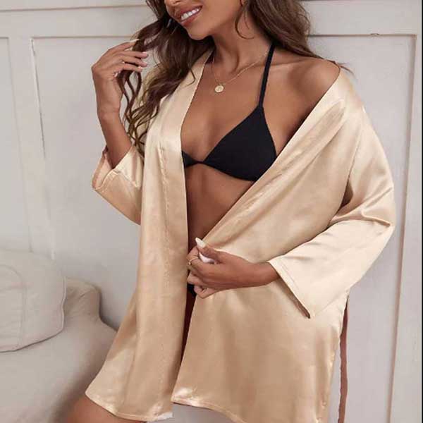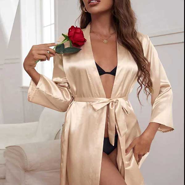 Champagne Silk Open Front Gown Free Size